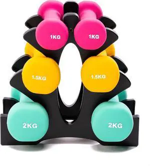 PRISP Dumbbells Set with Rack - 3 Pairs of Neoprene Free Weights with Stand