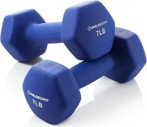 Philosophy Gym Neoprene Dumbbell Hexagon Hand Weights, 7 lb Pair - 14 lb Total