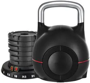 Kettlebell, Adjustable Kettlebell with 7 Weight Levels (5, 11.5, 18, 24.5, 31, 37.5, 44 lbs), Die-Cast Aluminum and ABS Material, for Grip Strength Training, Full-body Workout & Cross-Training
