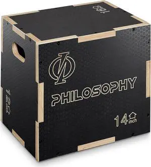Philosophy Gym 3 in 1 Non-Slip Wood Plyo Box, 16" x 14" x 12", Black, Jump Plyometric Box for Training and Conditioning