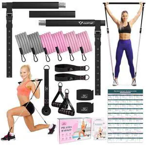 Pilates Bar Kit with Resistance Bands 140 lbs  Adjustable Portable Home Gym Workout Equipment for Women & Men  Full Body Fitness Bar for Legs, Glutes, Arms, Core & Back