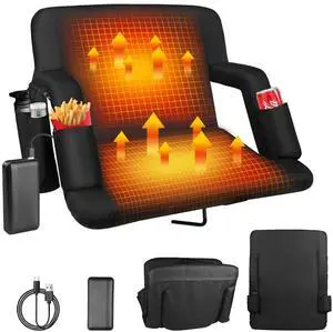 Heated Stadium Seats for Bleachers with Back Support 20 Inch Bleacher Chair with 20000mAh Batter3 Levels Heating Stadium Chair with 6 Reclinng Positions 3 Pockets Portable Waterproof (1, 20inch)