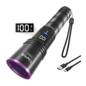 TrixHub 365nm Black Light Flashlight, UV Flashlight Rechargeable with LCD Display, Powerful Ultraviolet Lights for Pet Urine Detection, Resin Curing, Blood Tracking, Scorpion, Uranium Glass, A/CLeak