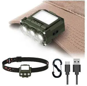Ecocleanpath USB-C Rechargeable Headlamp with Red Light, 6 LED 5 Modes, 180° Adjustable, IPX4 Waterproof for Camping Hiking (Green)