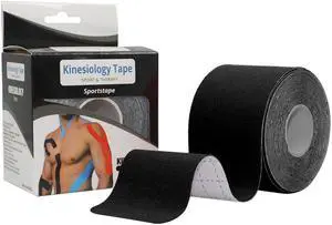 COMOmed Kinesiology Tape Water Resistant Uncut Sports Tape - 2 in x 16.5 ft - Professional Kinesiology Therapeutic Sports Tape,Black, Latex Free