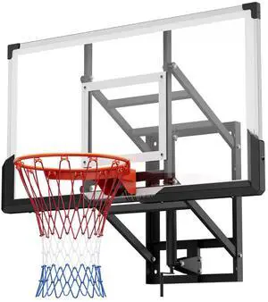 Wall Mount Basketball Hoop, 54-inch PC Backboard Mounted Basketball Hoop Outdoor with Hand-Crank Adjustment, 0.11 inch Thickened Backboard, Classic Basketballs Hoops Design, Indoor & Outdoor Use
