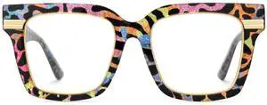 VOOGLAM Square Women's Non-Prescription Glasses with HD Clear Lenses in Multicolor Leopard Acetate Frame