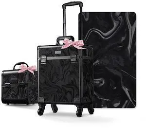 BYOOTIQUE Rolling Makeup Train Case on Wheels 3-Piece Hairdressing Brush Bags Cosmetology Art Deco Graphite