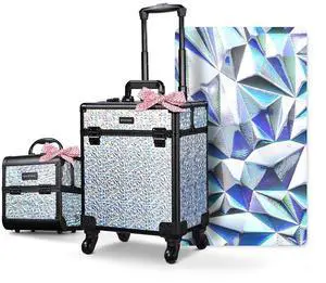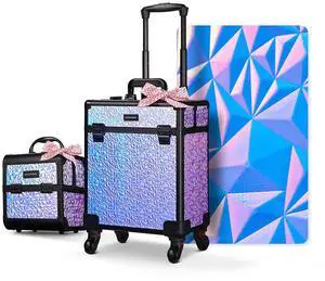 Byootique Rolling Makeup Train Case 3-Piece Cosmetic Organizer Kit Trolley Organizer Travel Case Lockable Salon Barber Case Traveling Cart Trunk with Wheels for Makeup Artist Trave Nail,Mermaid Silver
