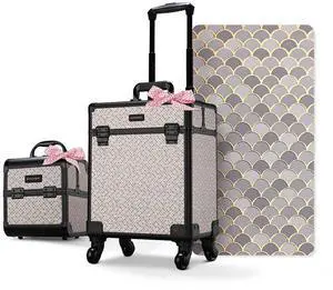 BYOOTIQUE Makeup Train Case Trolley w/ Cube Case Cosmetic Organizer Art Deco Pastel