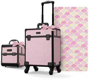 Byootique 2-Piece Makeup Train Case Cosmetic Organizer Kit Mermaid Black Salon