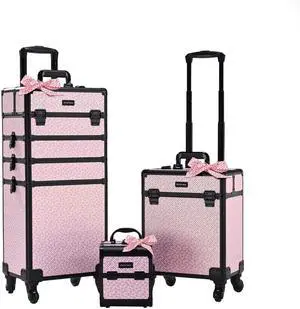 BYOOTIQUE Rolling Makeup Train Case on Wheels 3-Piece Hairdressing Brush Bags Cosmetology Art Deco Pastel