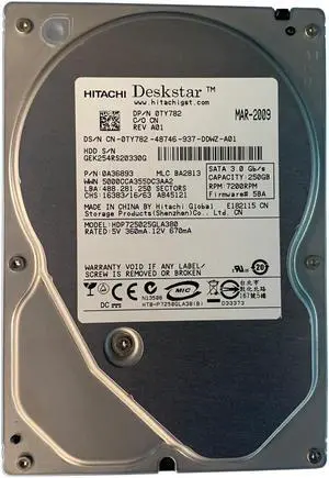 Dell TY782 250GB SATA 7.2K 3GBPS 3.5" Drive HDP725025GLA380 0A36893