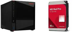 Asustor Nimbustor 4 Gen2 AS5404T 4 Bay NAS, Quad-Core 2.0GHz CPU, Dual 2.5GbE Ports, 4GB DDR4, Four M.2 SSD Slots (Diskless) Western Digital 10TB WD Red Pro NAS Internal Hard Drive HDD - 7200 RPM, SATA 6 Gb/s, CMR, 512 MB Cache, 3.5" - WD1
