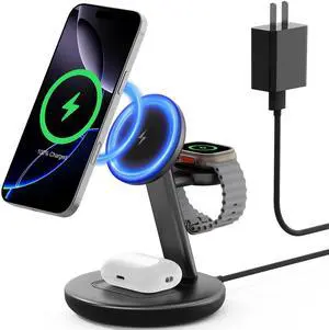 3 in 1 Wireless Charging Station for Apple Device: Fast Charging Station for iPhone and Watch with MagSafe, Stable Charger Stand for iPhone 12-16 & iWatch & AirPods