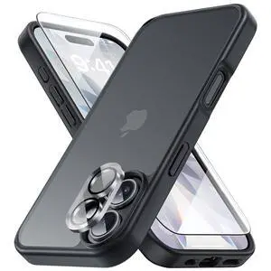 SOEWIOU 3 in 1 for iPhone 17 Phone Case,1X Screen Protector +1X Camera Lens,Shockproof for iPhone 17 Case, Military Grade Drop Protection, Protective Hard Back Slim Translucent Cover, Black
