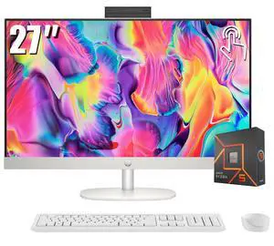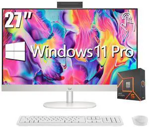 HP 27 All-in-One Desktop, 27" FHD (1920 x 1080) LED Display, AMD Ryzen 5 7520U (>i5-1135G7), 32GB DDR5 RAM / 1TB SSD, Wi-Fi 6, Bluetooth 5.0, Copilot, Wireless Keyboard and Mouse, Win11 Pro