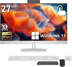 HP 27 All-in-One Desktop, AMD Ryzen 5 5500U, 16 GB RAM, 512 GB SSD, Full HD IPS Touchscreen, Windows 11 Home, 4 USB Ports, Privacy Camera, Dual Mics, Wireless Keyboard and Mouse (27-cb0060, 2021)