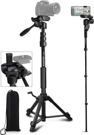 Camera Tripod 69 Inch, Patented 3-Way Swivel Portable Phone Tripod Professional Aluminum Alloy Travel Phone Camera Stand Monopod for Canon Nikon GoPro DSLR, DV Video Camcorder, Smartphone Black