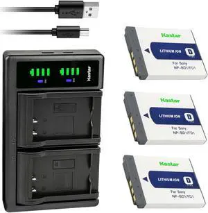 Kastar 3-Pack Battery and LTD2 USB Charger Compatible with Sony NP-BD1 NP-FD1 Battery, BC-CSD BC-CS3 Charger, Sony Cyber-shot DSC-G3, Cyber-shot DSC-T2, Cyber-shot DSC-T70, Cyber-shot DSC-T75 Cameras