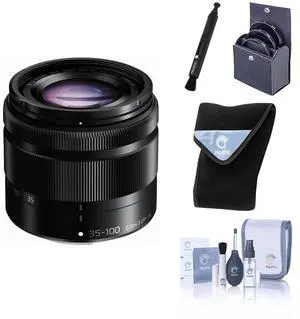 Panasonic LUMIX G Vario 35-100mm f/4.0-5.6 Aspherical Lens for Micro Four Thirds, Black, Bundle with Bower 46mm Filter Kit, ProOptic 46mm Filter Kit, Lens Wrap, Cleaning Kit, Lens Cleaner