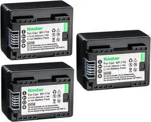 Kastar 3-Pack BP-718 Battery 3.7V 1900mAh Replacement for Canon VIXIA HF R30 HFR30, VIXIA HF R32 HFR32, VIXIA HF R36 HFR36, VIXIA HF R37 HFR37, VIXIA HF R38 HFR38, VIXIA HF R40 HFR40 Camera