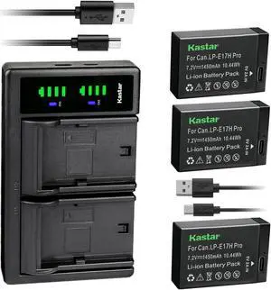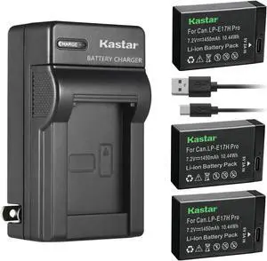 Kastar 3-Pack LP-E17H Pro Battery W/ Type-C Cable and AC Wall Charger Replacement for Canon KISS X8i, KISS X9i, Rebel SL2, EOS Rebel T6i, EOS Rebel T6s, EOS Rebel T7i, EOS Rebel T8i, EOS M3 Camera