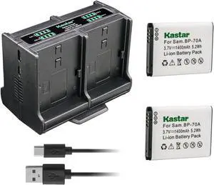 Kastar 2-Pack BP-70A Battery and Quadruple Charger Compatible with Samsung PL21, PL80, PL81, PL90, PL91, SL50, SL600, SL605, SL630, ST100, ST150F, ST151F, ST152F, ST30, ST60, ST61, ST64, ST65 Camera- Part Number: LHD4-2B-BP70A-D