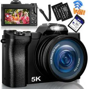 Digital Camera 5K 64MP Cameras for Photography with 6X Optical Zoom,WiFi Dual-Lens Vlogging Camera for YouTube Video with 64GB Card
