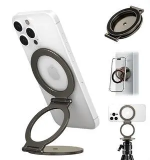 Dual Magnetic Phone Holder for MagSafe, 1/4" Screw Tripod Mount Adapter, Gym Magnet Phone Stand with Kickstand for iPhone 16 Pro Max 15 14 13 12 MagSafe Case Cell Phone
