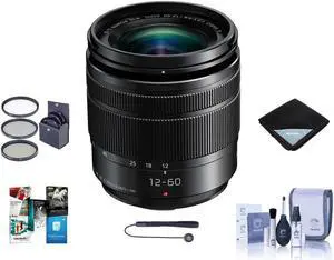 Panasonic Lumix G Vario 12-60mm F/3.5-5.6 Micro 4/3 Lens,Black W/Free Acc Bundle
