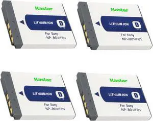 Kastar 4-Pack NP-BD1 Battery 3.7V 1100mAh Replacement for Sony NP-BD1 NP-FD1 Battery, Sony D Type Battery, Sony BC-CSD BC-CS3 Charger, Sony Cyber-shot Camera