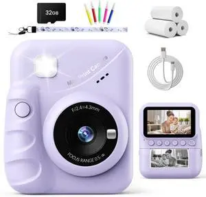 Kids Camera Instant Print for Girls Ages 3-14, 3-inch HD Screen Camera for Kids with Printing Paper, 1080P Digital Toddler Toys for 4 5 6 7 8 9 10 11 12 Years Old (Purple)