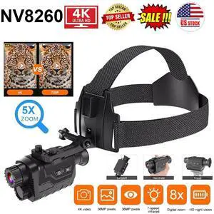 NV8260 8X Digital Zoom 400M 4K 1080P HD Night Vision Head-Mounted Monocular USA