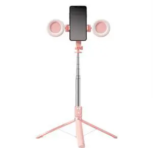 Selfie Stick Tripod with Light and Bluetooth Remote, 67" Extendable Mini Tripod Stand for iPhone Samsung Android, 6 in 1 Wireless Selfie Stick for TikTok YouTube Live Streaming(Pink)