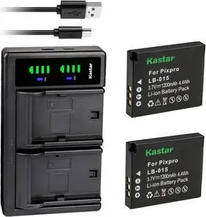 Kastar 2-Pack Battery and LTD2 USB Charger Compatible with Kokad LB-015 Rechargeable Lithium-ion Battery and Kokad PIXPRO WPZ2 Digital Camera, Kokad Pixpro WPZ2 Rugged Waterproof Action Camera