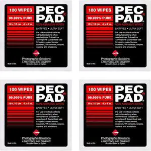 PEC-PAD Lint Free Wipes 4x4 Non-Abrasive Ultra Soft Cloth for Cleaning Sensitive Surfaces like Camera Lens Filters Film Scanners Telescopes Microscopes Binoculars. (100 Sheets Per/Pkg) 4-Pack