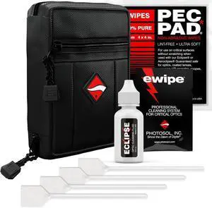 Deluxe Essentials DSLR Camera Cleaning Kit with 10 APS-C Cleaning Swabs, Sensor Cleaning Fluid, Rocket Air Blower, Lens Pen, Soft Brush, 2X Small and 2X Large Microfiber Cloths and Carrying Case