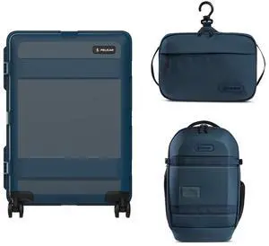 Pelican ATX 25" Waterproof Wheeled Check-In Hard Travel Case, Bundle with PX25 25L Travel Backpack and DK5 ModPak Travel Toiletry Bag, Indigo Blue