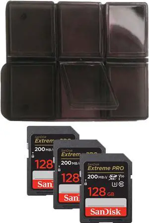 SanDisk Extreme Pro 128GB SDXC UHS-I V30 200MB/s Class 10 Memory Card - 3 Count + Memory Card Holder
