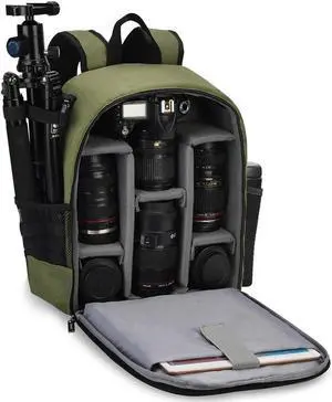 Camera Backpack Bag Professional for DSLR/SLR Mirrorless Camera Waterproof, Camera Case Compatible for Sony Canon Nikon Camera and Lens Tripod Accessories Green