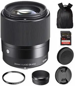 Sigma 16mm f/1.4 DC DN Contemporary Lens for Sony E, 67mm UV, 64GB, Large Bag
