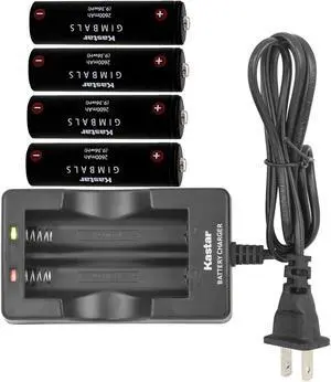 Kastar 4-Pack Battery and AC Wall Charger Replacement for Manfrotto MVG460 & MVG460FFR, XHDATA D-808 AM/FM, GMB-B117, GMB-B118 Battery, EVO GP GP-PRO RAGE3 Gimbal, EVO RAGE (Gen 1) Gimbal