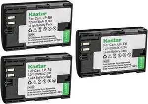 Kastar 3-Pack LP-E6 Battery Replacement for Canon EOS R, EOS Ra, EOS R5, EOS R6, EOS 90D, XC10, XC15, EOS 5D Mark II, EOS 5D Mark III, EOS 5D Mark IV, EOS 5DS, EOS 5DS R Camera