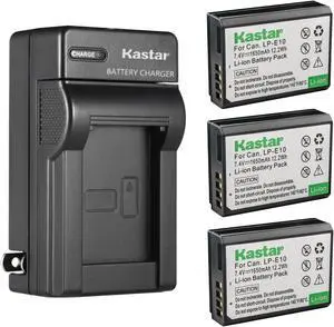 Kastar 3-Pack LP-E10 Battery 7.4V 1650mAh Replacement for Canon LP-E10 LPE10 Battery, LC-E10 LC-E10N Charger, Canon EOS Rebel T7, EOS Rebel T100, EOS 1100D, EOS 1200D, EOS 1300D, EOS 1500D Camera