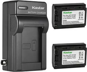 Kastar 2-Pack NP-FZ100 Battery and AC Wall Charger Replacement for Sony Alpha 7R V Full-Frame Mirrorless Interchangeable Lens Camera, FX30 Digital Cinema Camera, Sony Cinema Line FX30 Super 35 Camera