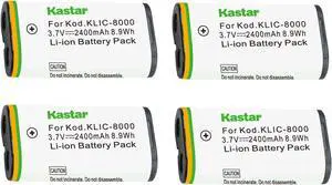 Kastar K8000 Battery 4-Pack Replacement for Kodak KLIC-8000 K8000 Battery, Kodak K7600-C, K8500-C Charger, Kodak Z812 IS, Z8612 IS, Pocket Video Camera ZX1 Camera
