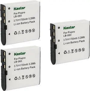 Kastar 3-Pack Battery Replacement for Kodak LB-060 LB060 Battery, Kodak PixPro AZ522, PixPro AZ525, PixPro AZ526, PixPro AZ527, PixPro AZ528 Camera, Minolta MN53Z 16MP FHD Wi-Fi Bridge Camera