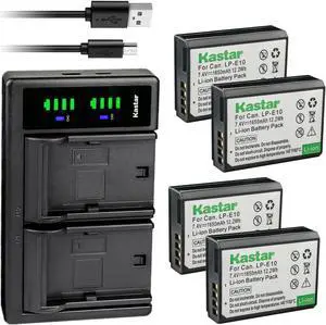 Kastar 4-Pack Battery and LTD2 USB Charger Replacement for Canon LP-E10 LPE10 Battery, Canon LC-E10 LC-E10N Charger, Canon EOS Kiss X50, EOS Kiss X70, EOS Kiss X80, EOS Kiss X90 DSLR Cameras