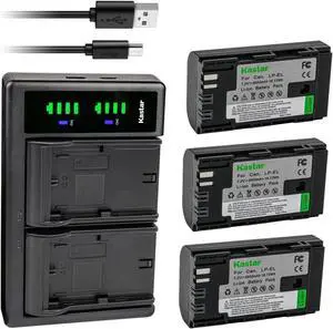 Kastar 3-Pack LPEL Battery and LTD2 USB Charger Compatible with Canon LP-EL Lithium-Ion Battery Pack, Canon Speedlite EL-5 On-Camera Flashs